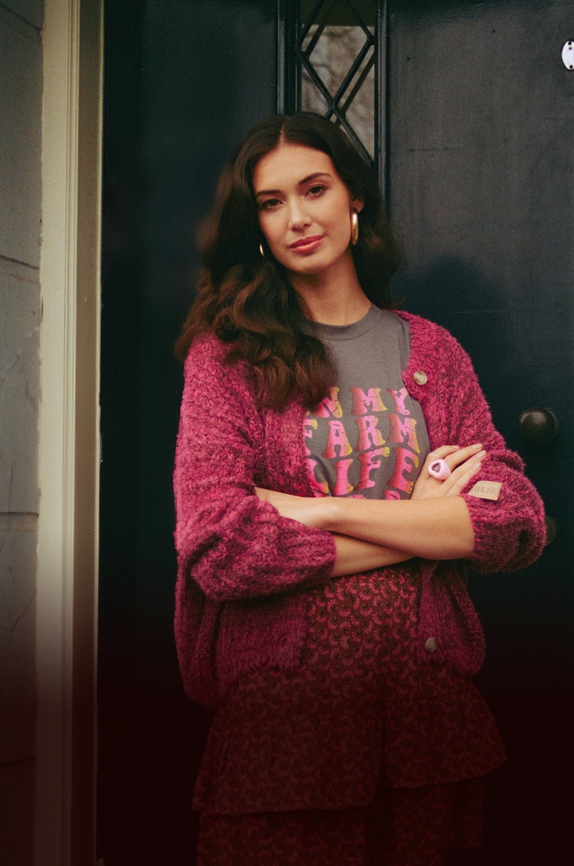 Cozy, chunky en altijd stijlvol. De KALISTA KNIT CARDIGAN is jouw go-to voor elke dag waarop je comfy én fashionable voor de dag wil komen. De grove knit, relaxte pasvorm en chunky knopen zorgen voor die typische cuddle vibe. Draag ‘m open met je favoriete denim of dichtgeknoopt voor een knusse layered look.