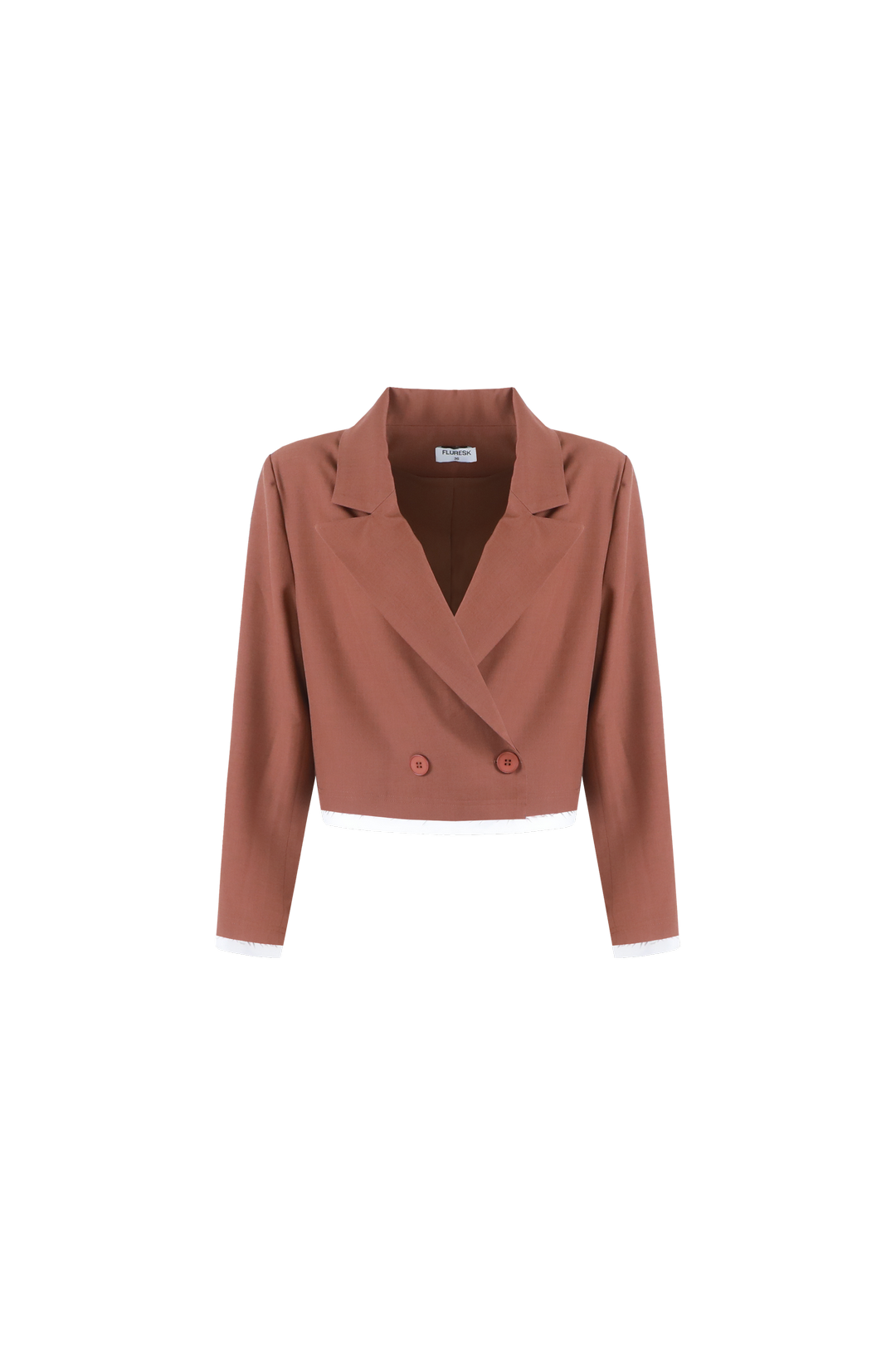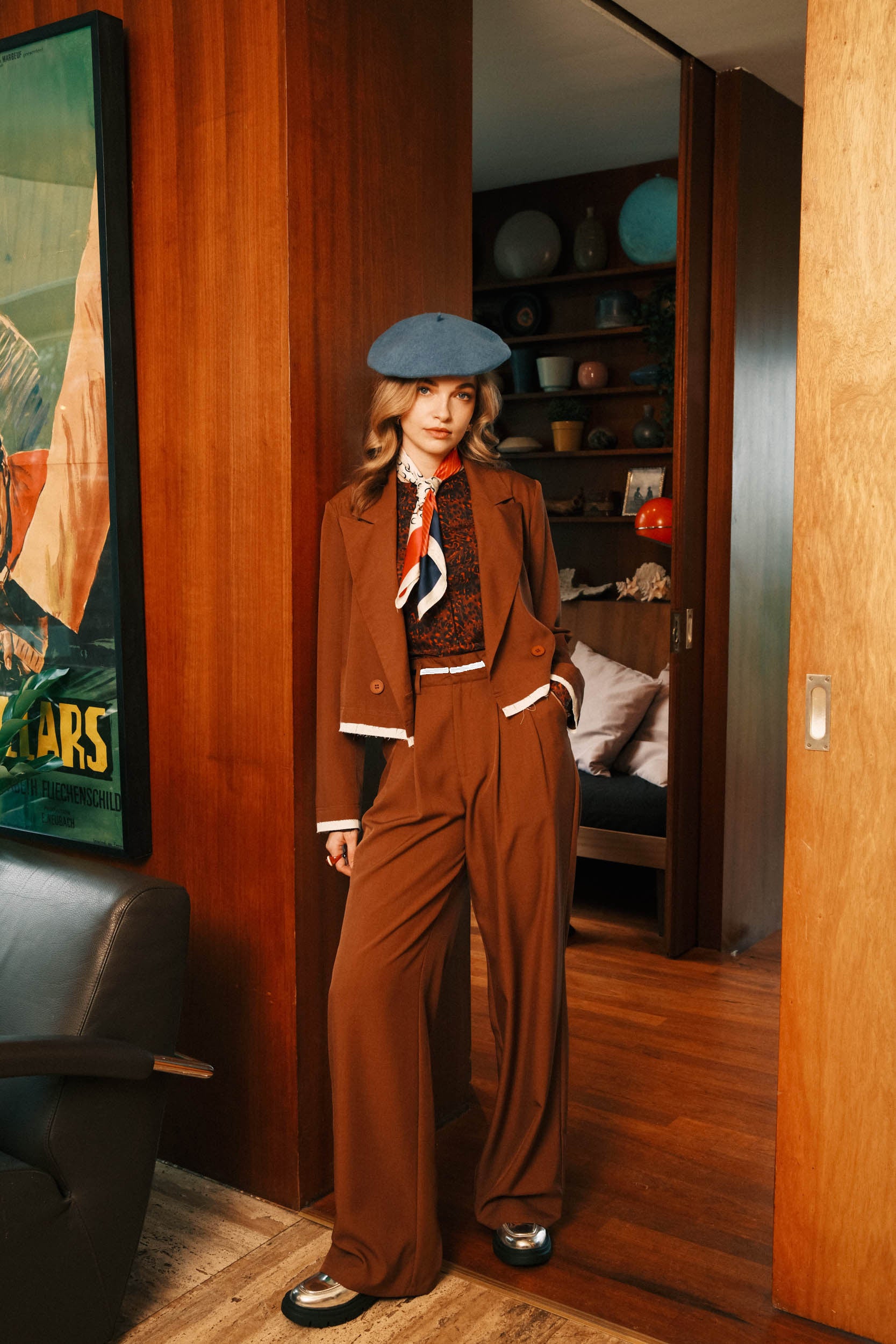 De TALITHA JACKET is de perfecte mix van kracht en finesse. Deze cropped blazer in de kleur rum raisan heeft een dubbele knoopsluiting en een strakke reverskraag die zorgt voor een moderne, minimalistische look. De rechte fit en clean afwerking geven ‘m een sophisticated uitstraling. Combineer ‘m met de bijpassende MIRAI PANTS voor een stijlvolle set die net zo comfortabel als opvallend is.