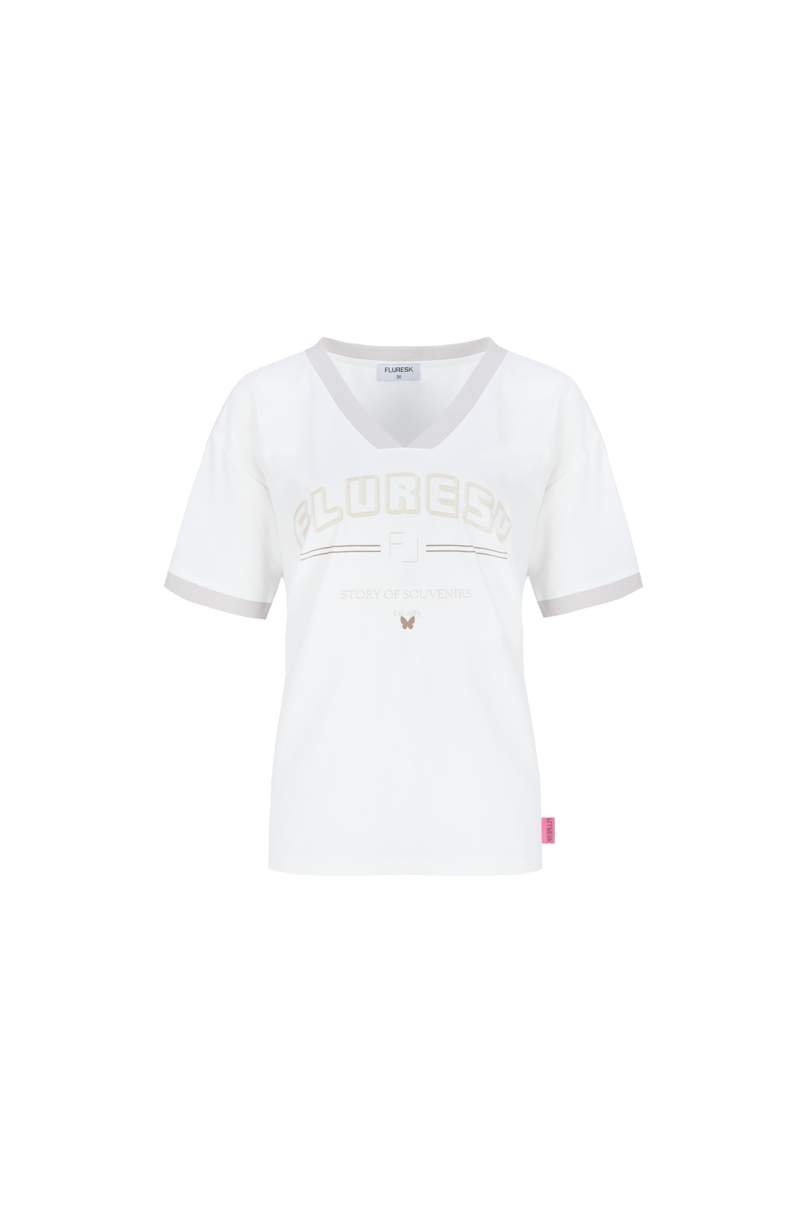 De INDIRA T-SHIRT heeft die casual-cool vibe waar we van houden. De V-hals, contrasterende biezen en zachte kleurcombi maken ‘m sporty & sweet tegelijk. De print met “Story of Souvenirs” geeft een knipoog naar de campagne – draag dit shirt als reminder om van elk moment een memory te maken.