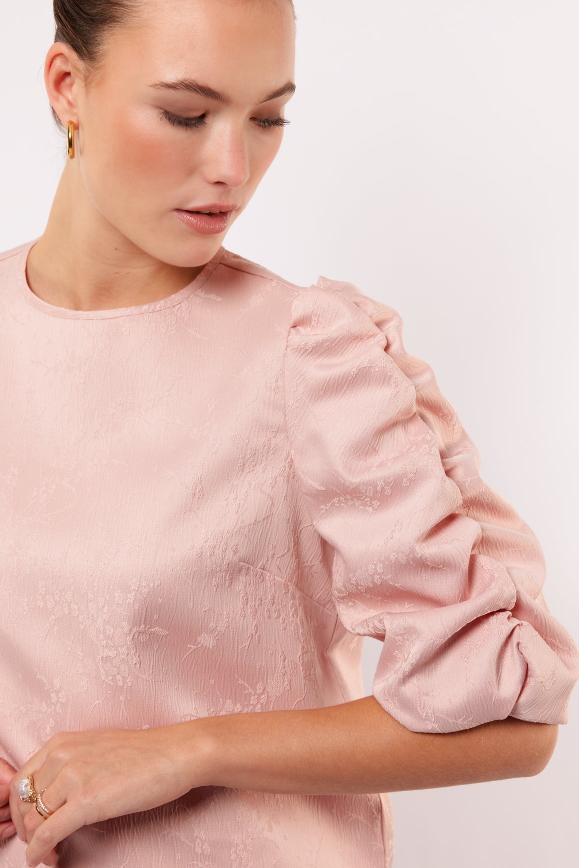 Hello volume! De MELANI TOP is gemaakt om op te vallen met haar geplooide pofmouwen. De subtiele glans in de stof zorgt voor een luxe touch, terwijl de rechte fit het item perfect maakt voor zowel een jeans als een wide leg. Simpel maar striking.