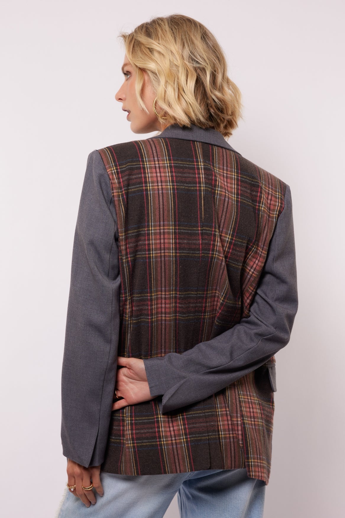 Classic in the front, party in the back. De FLORIEN BLAZER lijkt op het eerste gezicht een nette grijze blazer — maar draai je om en BAM: ruitprint op de rug voor de ultieme FLURESK-surprise. Draag ‘m open met een basic tee of ga all-out met print-on-print.