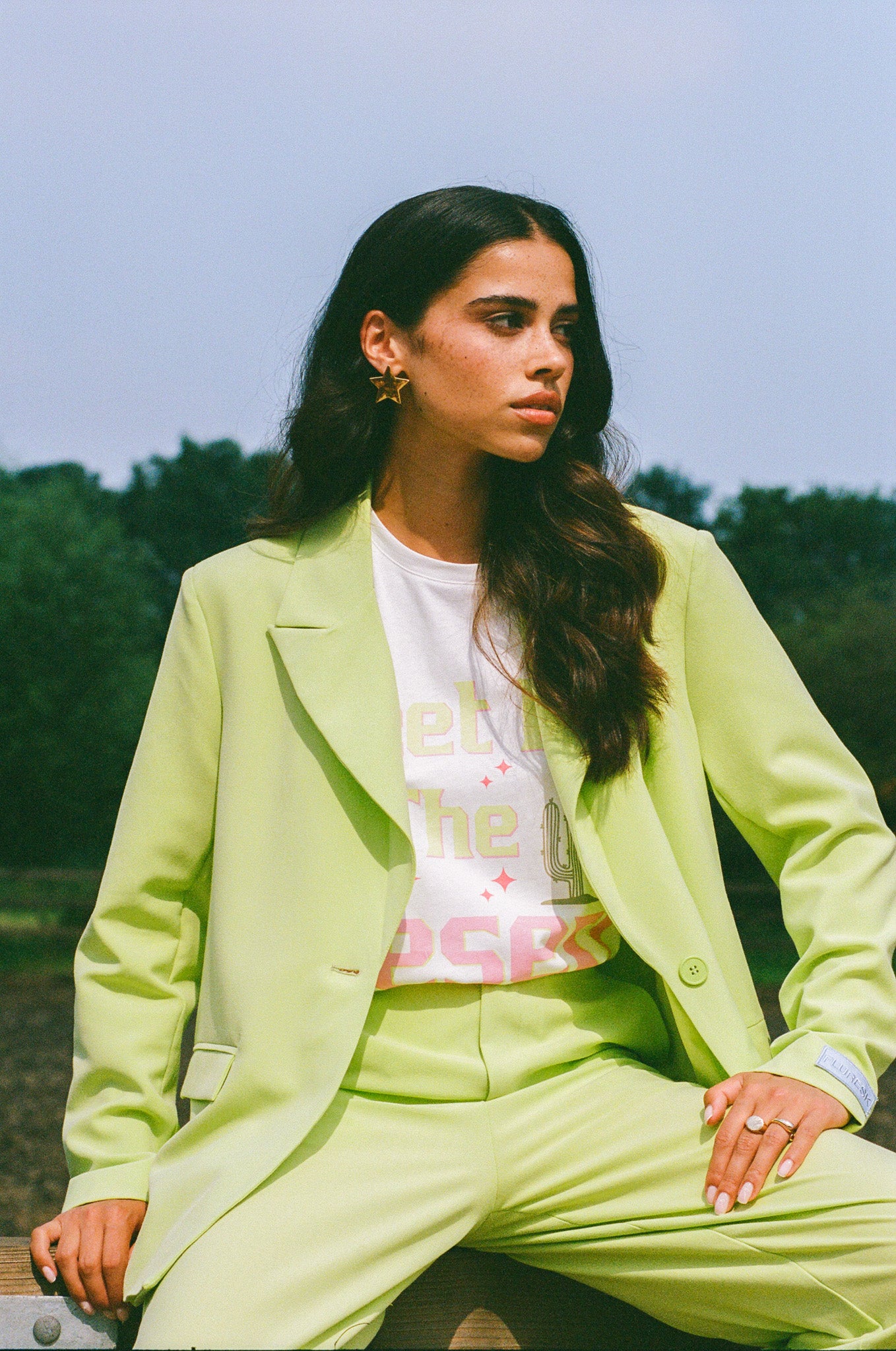 Ga voor effortless cool met het MOIRA T-SHIRT. Dit witte statement shirt brengt een vleugje woestijnmagie naar jouw garderobe met zijn funky "Meet Me In The Desert"-print in speelse pastelkleuren. De oversized fit en zachte katoenmix zorgen voor ultiem draagcomfort – perfect voor zonnige dagen, festivals of een casual streetwear look. Combineer het MOIRA T-SHIRT met de SAMARA PANTS voor een gedurfde color-pop combinatie, of draag ‘m met een denim short en chunky sneakers voor een laid-back vibe.