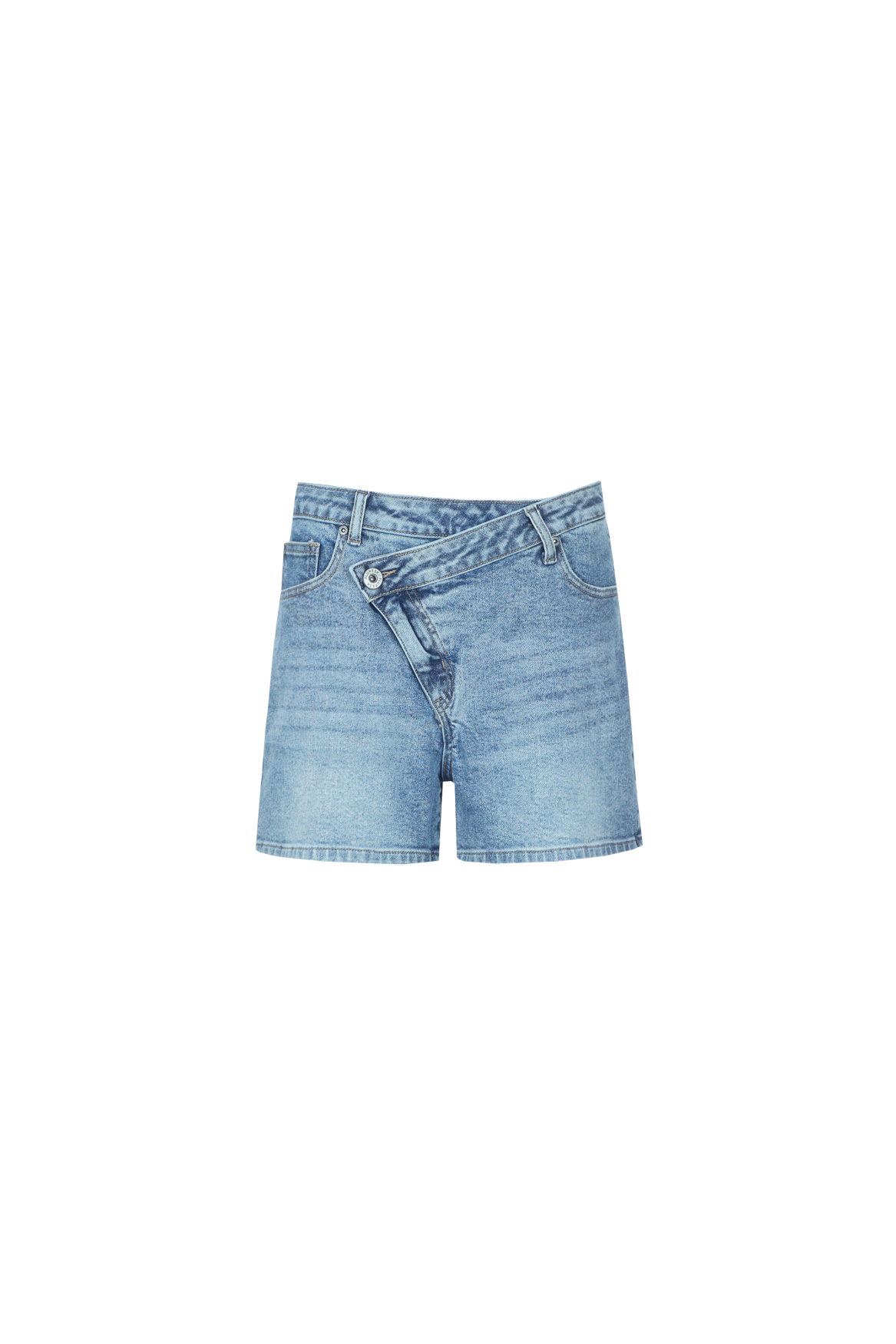 Stoer met een speelse twist. De Gwenn short is een denim essential met een opvallende asymmetrische sluiting die meteen in het oog springt. De lichte wassing geeft de short een frisse, zomerse uitstraling.